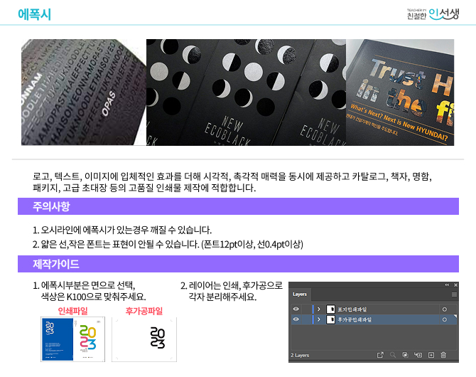 종이공작 / 달력 / 카드 / 표지 / 면지 / 고급 패키지 / 봉투 / 홀더 등